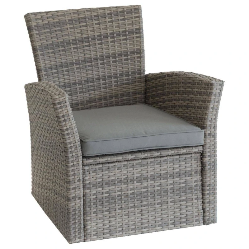 Le salon dispose d’une structure en acier traité époxy antirouille et d’un habillage en résine tressée résistant aux UV.